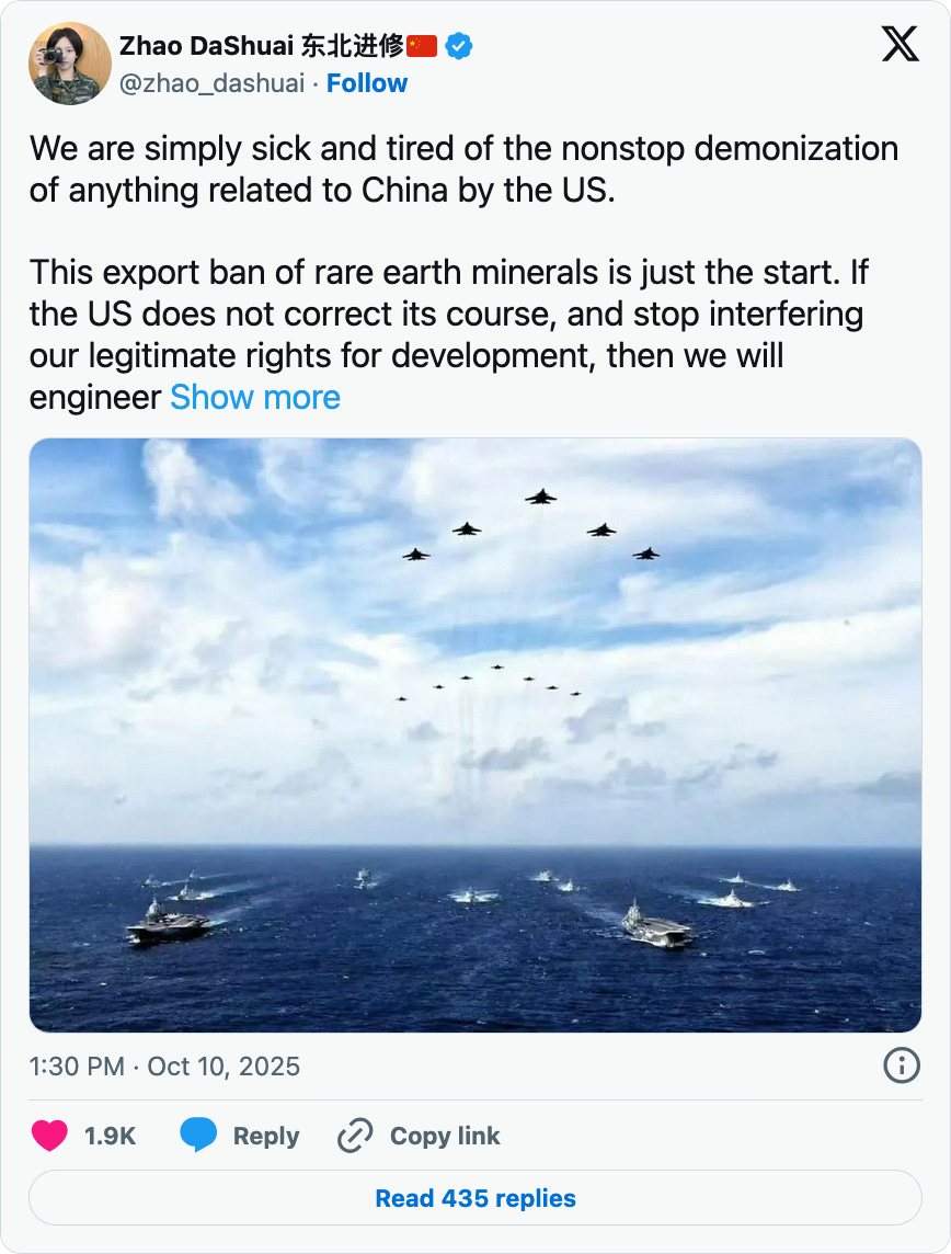 China is now punching back with power. Arnaud Betrand, writing on his X account, lays it out in detail:
